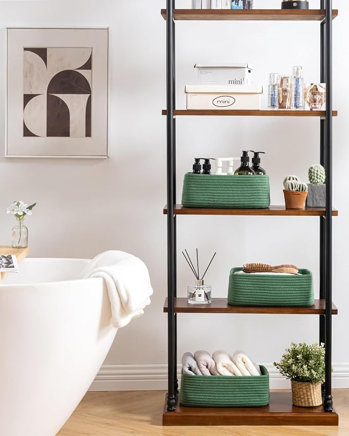 - [ Elegantly Designed to Match Any DΓ©cor ] Our small rope basket creates a minimalist appearance, and it adds a touch of warmth and texture to any room. The classic solid color design ensures seamless integration with your existing aesthetics, complementing any decoration. Perfect as decorative storage baskets for shelves, cabinets, and any open display space, making them a stylish and practical addition to any decor, enhancing the overall aesthetics of your room