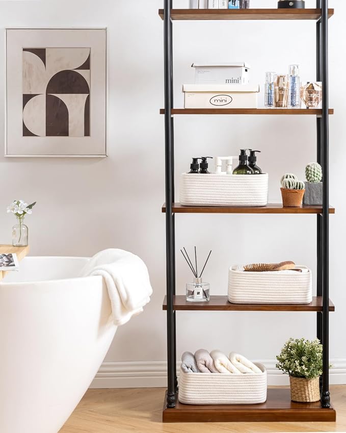 - [ Elegantly Designed to Match Any DΓ©cor ] Our small rope basket creates a minimalist appearance, and it adds a touch of warmth and texture to any room. The classic solid color design ensures seamless integration with your existing aesthetics, complementing any decoration. Perfect as decorative storage baskets for shelves, cabinets, and any open display space, making them a stylish and practical addition to any decor, enhancing the overall aesthetics of your room