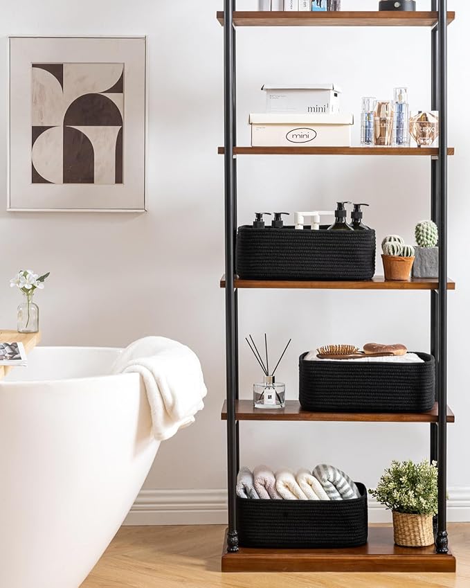 - [ Elegantly Designed to Match Any DΓ©cor ] Our small rope basket creates a minimalist appearance, and it adds a touch of warmth and texture to any room. The classic solid color design ensures seamless integration with your existing aesthetics, complementing any decoration. Perfect as decorative storage baskets for shelves, cabinets, and any open display space, making them a stylish and practical addition to any decor, enhancing the overall aesthetics of your room