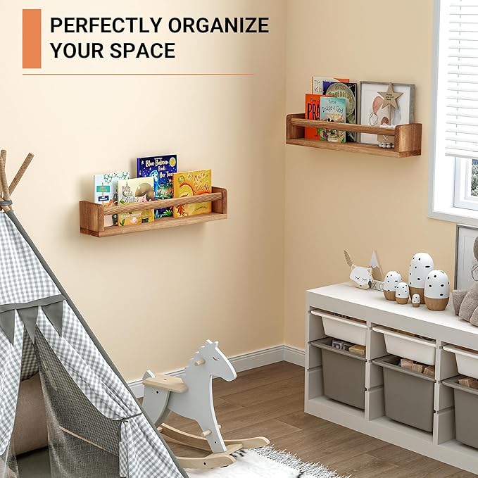 - [Versatile Nursery Shelves] - Heimlove floating shelves offer two installation options, allowing you to mount them either upwards or downwards, effortlessly adapt them to fit any space or aesthetic.They are perfect as a chic bookshelf for a nursery, a display shelf for the living room, or a spice rack for the kitchen.