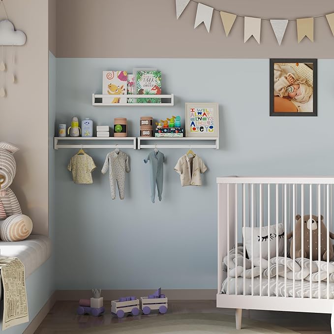 - [Experience Effortless Mounting] - Our nursery floating shelf comes with detailed step-by-step instructions and a complete hardware kit for easy installation. Measured size of 4โ D x 24โ W x 3.5โ H, ideal size for nursery room.