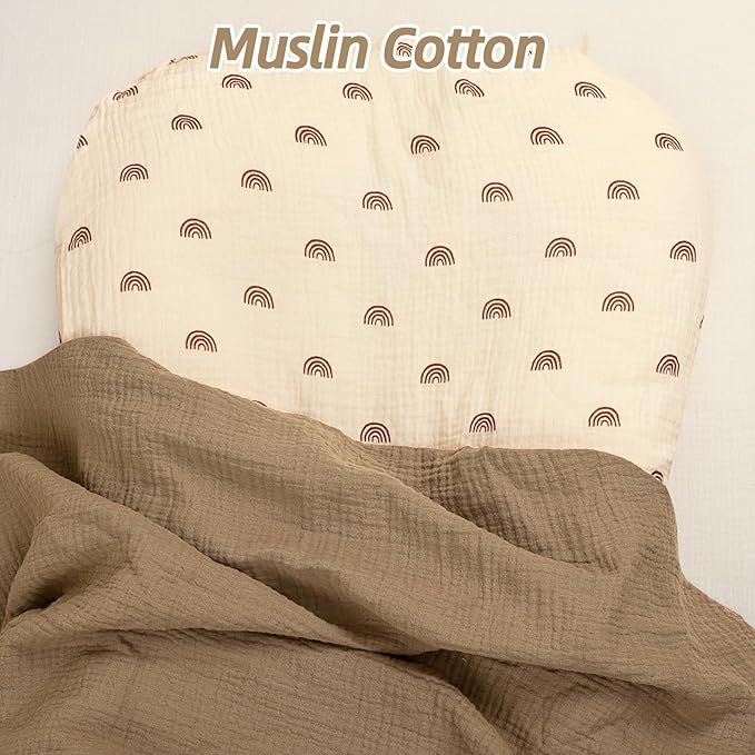 - 100% Muslin Cotton - Trusted by Parents: Crafted by Hooyax, specialists in premium muslin cotton baby products. These baby lounger covers offer unmatched breathability to prevent overheating. Ultra-soft texture feels like a second skin, ideal for delicate newborn skin (30% more airflow than polyester blends)