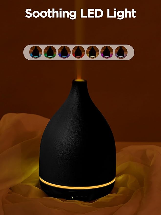 InnoGear Oil Diffuser, 300ML Ceramic Diffuser for Essential Oils Handcrafted Aromatherapy Diffuser Ultrasonic Cool Mist Humidifier with 4 Timers Waterless Auto Off for Room Office, Black