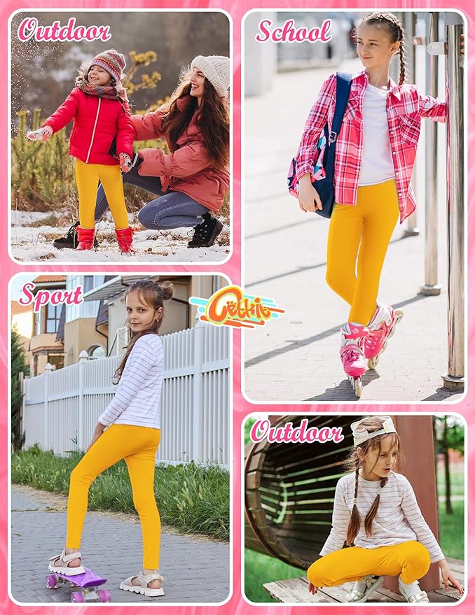 - 【High-Quality Warm Leggings for Girls】 These girls' leggings are made of 94% polyester and 6% spandex. The fabric is stretchy, ultra-soft, and breathable, making these girls' athletic leggings very comfortable and flexible. All Kids Leggings are made from premium four-way stretch fabric, with an elastic band sewn into the waistband, which lies flat on the waist for a comfortable and good fit.