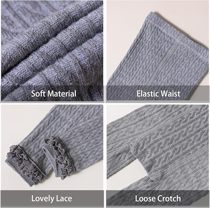 - 【Soft and comfortable】Silkglory baby girl leggings are made of 80% cotton,15% polyester and 5% spandex to ensure that they will not irritate your baby's skin.Made of high-quality materials,it is durable.Whether it is a school Halloween party, Christmas celebrations, or New Year's happy moments, it can accompany little girls to play and dance without worrying about wear and tear.What's more special is that it has cute lace decorations, adding a playful and eye-catching touch to little girls
