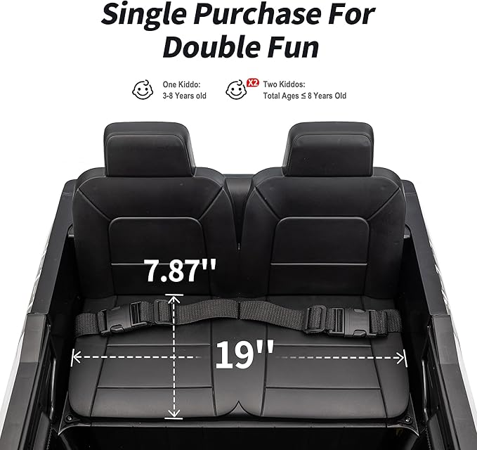 - 19" WIDE TWO SEATER: This 24V battery powered police kids car has ample seater, allowing two children to ride together comfortably under 110lbs. Adjustable seat belts and double-locking door design also ensure kid's safety.