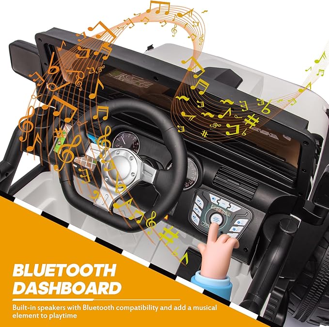 - BLUETOOTH CONNECTION: The battery powered 24 volt ride on toy car is equipped with USB/Bluetooth/MP3 player. Kids can play their favorite music for an enjoyable driving experience that's sure to impress!