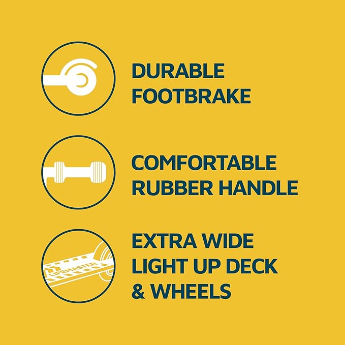 - ATTRACTIVE MULTI-COLOR LED: Bring excitement to every ride with vibrant, multi-color flashing lights on deck and wheels. Better visibility during evening rides, making this scooter safer for nighttime use. Three AA batteries are required (not included).