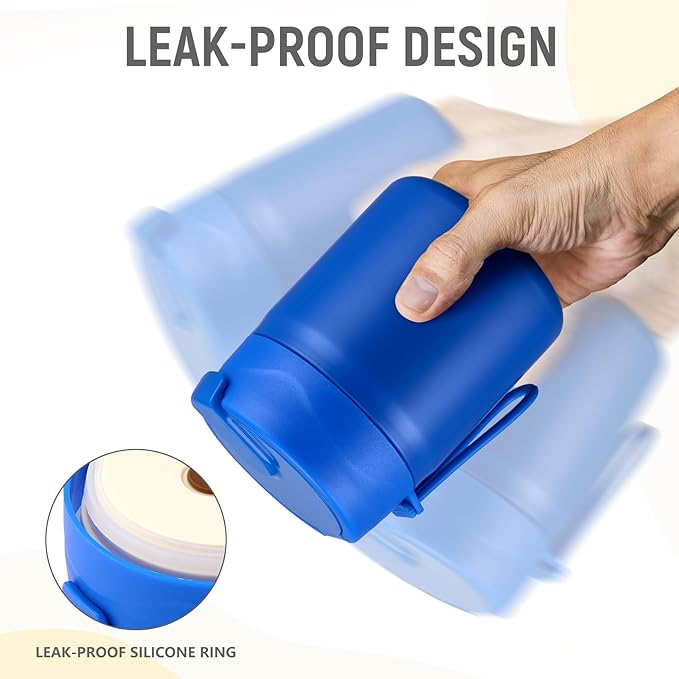 - 17oz Leak-proof thermo for hot food: Our insulated food jar has a 17oz capacity for holding as much food as you want, the insulated food canister is designed with a safety sealing lid to prevent liquids from leaking.