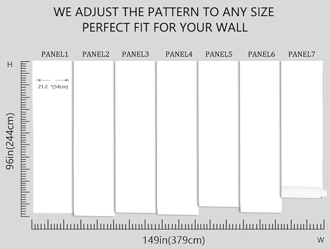 - Before purchasing, you need to measure the size you need, our mural is 96 inches high and 149 inches wide, in order to facilitate long-distance transportation, we divide the width of the mural into six pieces of 21.2 inches each, with a numerical serial number underneath each piece for easy installation!