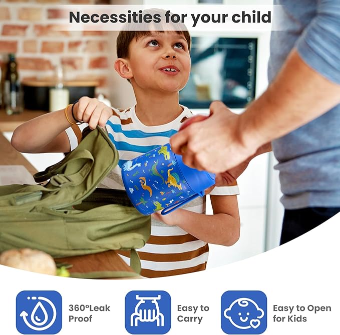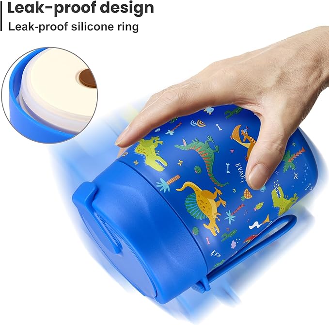 - Leak-Proof Design: Featuring an upgraded double-layer silicone seal that provides a 360Β° leak-proof guarantee. Rest assured that our leak-proof thermo food jar can fit in your lunch bag without worrying about spills. The insulated thermal food jar comes with a stainless steel spoon for your child's convenience.