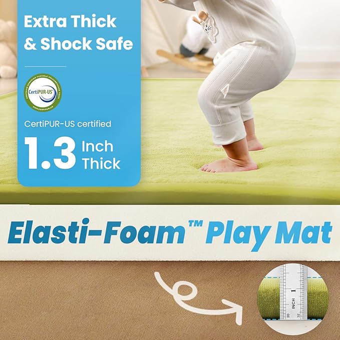 - Extra-Thick Cushioning for Impact Absorption: Featuring 1.3-inch premium memory foam,this baby floor bed mat offers superior shock absorptionβsofter than standard matsβto reduce bumps and injuries when toddlers roll or crawl off surfaces.