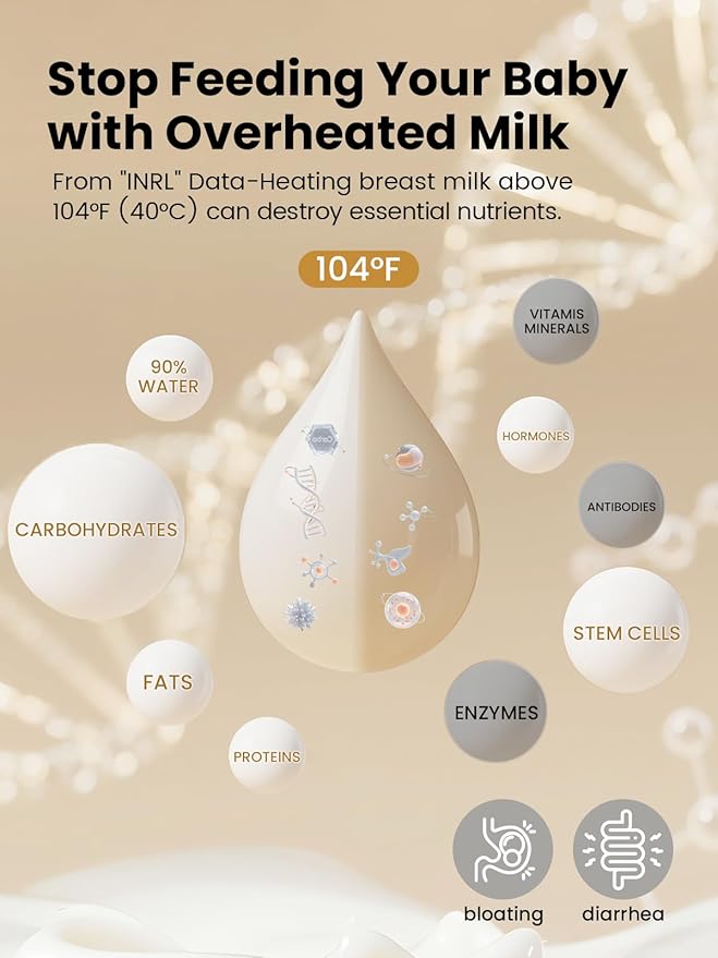 - ๐๐ฎ๐๐ ๐ช๐ฎ๐ฟ๐บ๐ถ๐ป๐ด & ๐ก๐๐๐ฟ๐ถ๐ฒ๐ป๐ ๐ฃ๐ฟ๐ฒ๐๐ฒ๐ฟ๐๐ฎ๐๐ถ๐ผ๐ป: Heats 4oz/120ml milk to the ideal temperature in 2-5 minutes, preserving nutrients through gentle water bath technology that avoids overheating, supporting your baby's digestion and growth. Features a 24-hour keep warm function, perfect for nighttime feedings and immediate baby comfort.