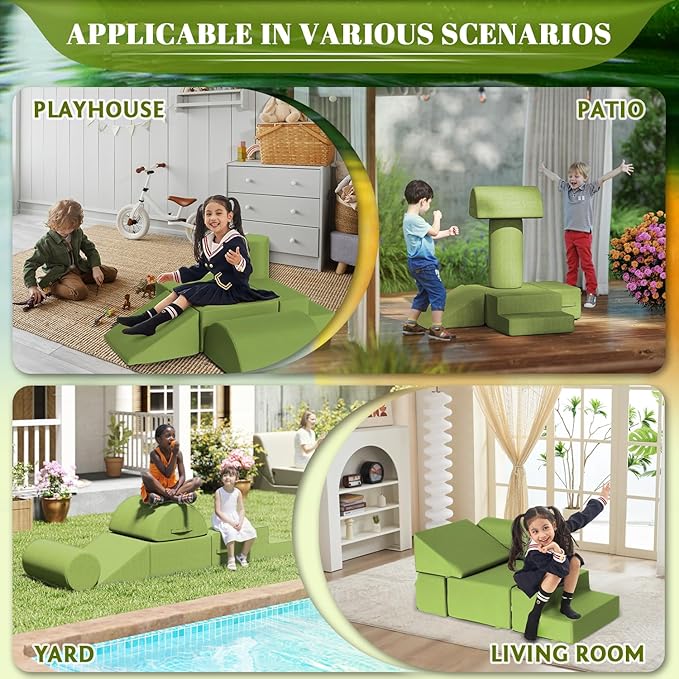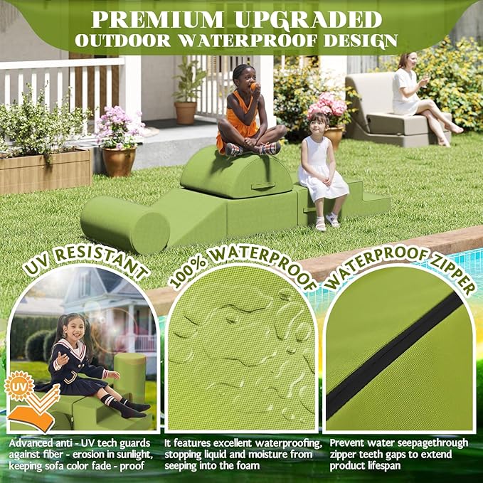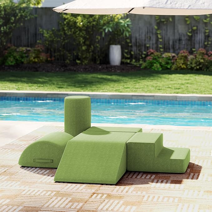 jela Foam Blocks 6Pcs Soft Play Equipment Waterproof Fabric, UV Resistant Toddler Climbing Toys Indoor& Outdoor Soft Play Climbing for Toddlers, Lightweight Climbing Blocks for Babies, Kids (Green)
