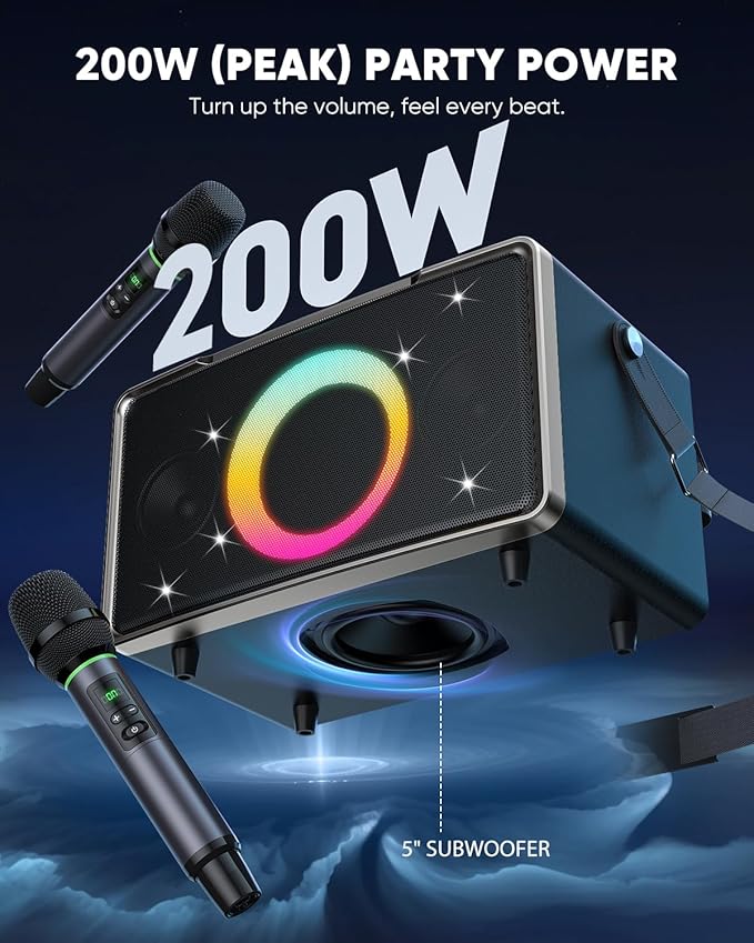 - WIRELESS MIC: Bluetooth speaker with microphone supporting 3 modes (KTV/Reverb/Speech). Bring it to your living room for family party sessions, or take it outdoors for park barbecues and picnics—turn any space into your personal stage.