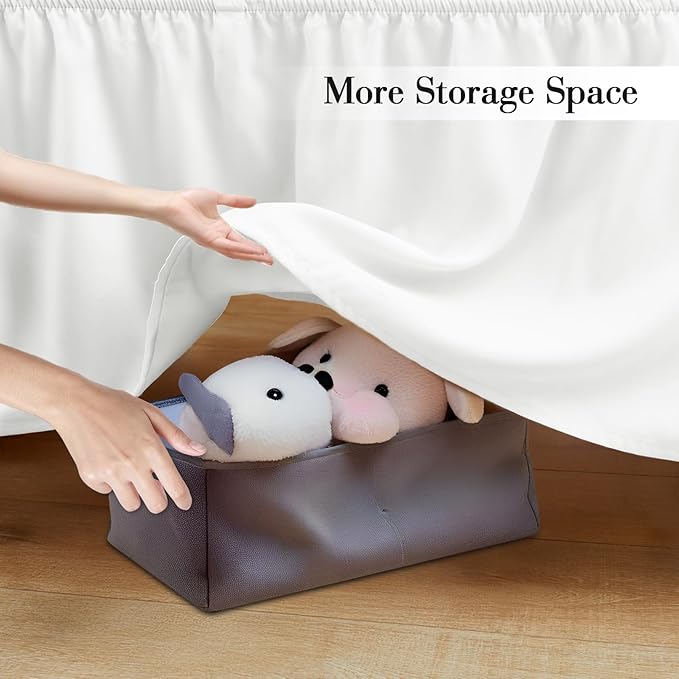 - Elegant Ruffled Design: Enhance your nursery with our white crib skirt, featuring flowy ruffles that add a charming touch to any theme, from whimsical to farmhouse aesthetics. 14" drop design helps to conceal easily storage space under the toddler bed.