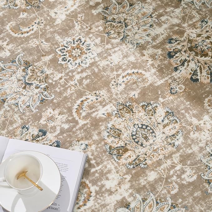 jinchan Round Rug 6ft Area Rug - Taupe Vintage Floor Mat Kitchen Indoor Ultra-Thin Soft Floral Print - Washable Circle 6' Retro Accent for Farmhouse Non Slip Dining Room Living Room Bedroom Office