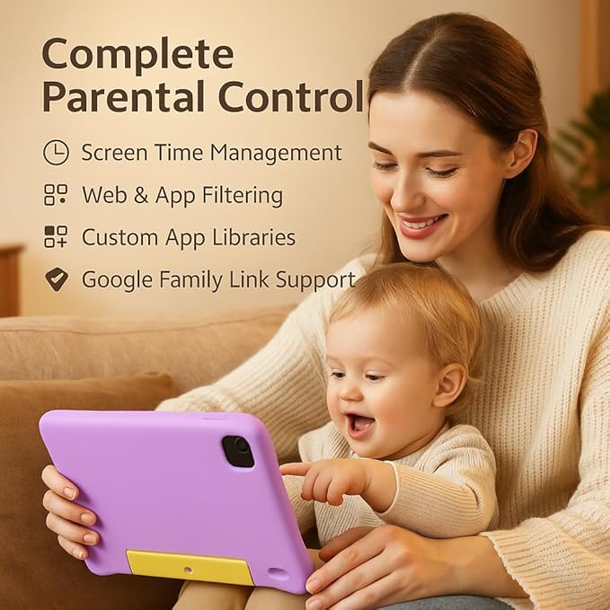• Safe Learning with Google Kids Space Pre-loaded with Google Kids Space and Family Link, giving parents full control over screen time, content, app access, and activity trackingβ€”ensuring your child explores safely and responsibly Kids Space & Preloaded Educational Apps | WiFi 6, HD Display, Ages 3-12
