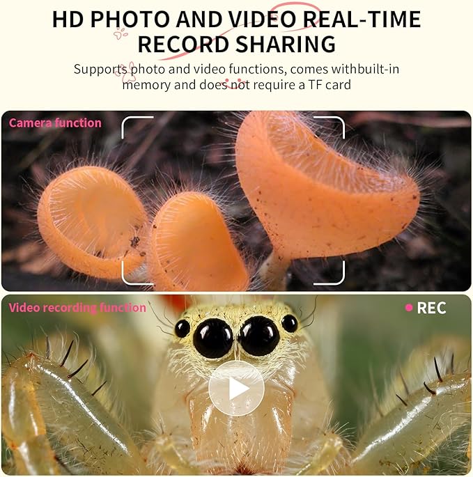 - Multifunctional Kids Microscope The Ashfly mini microscope supports photo taking and video recording, and comes with a memory of 100 photos (does not include TF card). The digital microscope also comes with a USB cable that can be used to charge the microscope and safely transfer photos and videos to a computer