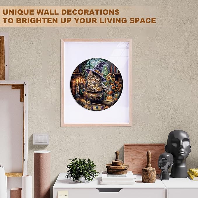 KAAYEE Wooden Puzzles for Adults, 3D Visual Effect Magic Feline Cat Wooden Jigsaw Puzzle Unique Shape Wood Puzzle Adult, 3D Effect Flat Puzzle Birthday Family Game (M-11.4 * 11.4 in-200pcs)