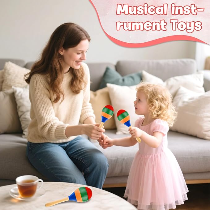- Kid-Safe Musical: 2 pcs maracas for kids adults. Starter wooden maracas for kids feature smooth. Perfect grip size helps toddlers develop motor skills while exploring rhythms