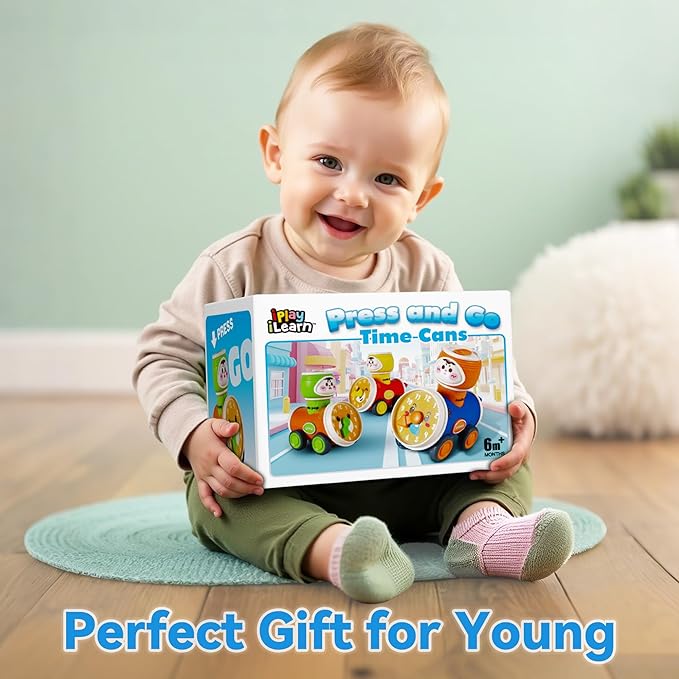 - Decorative Clocks — With bright colors and decorative clocks designs, our Press & Go car toy is sure to stimulate your child's curiosity and support their sensory and cognitive development.