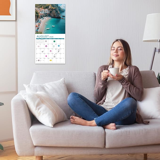 - 🏖️【Calendar 2025-2026】- 18-month wall calendar 2025-2026, covering July 2025 to December 2026. The unfolded size is 12x24 inches. Each page contains a monthly overview, mini month and moon phase reference for your quick browsing.