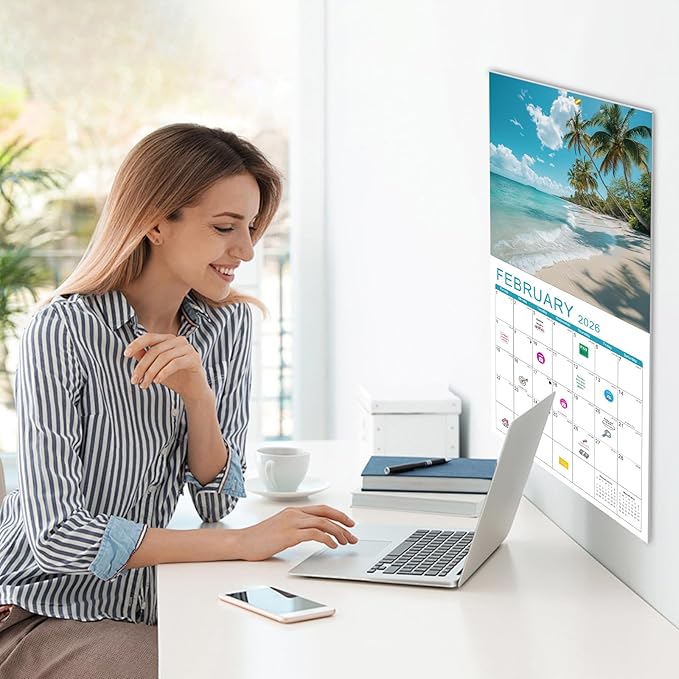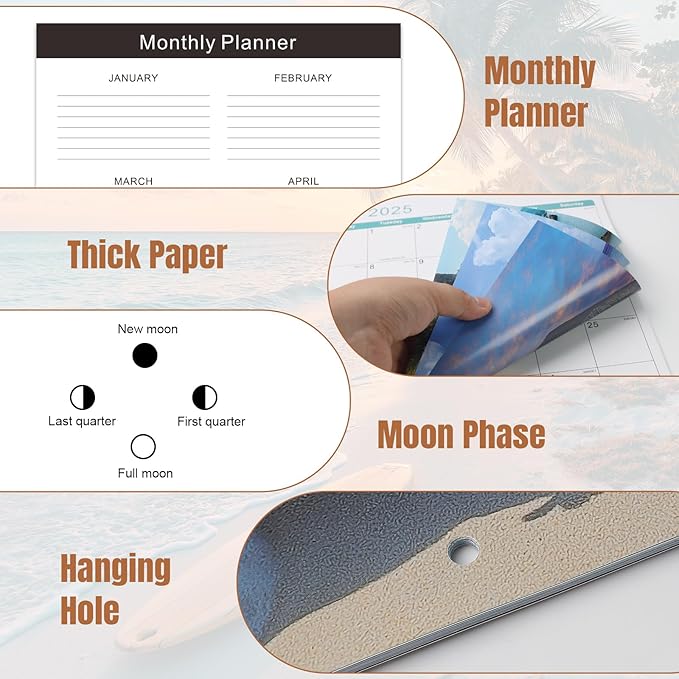 - 🏖️【Easy to Hang & Stickers】- The calendar 2025-2026 is easy to hang, each page is equipped with a well-positioned hanging hole, and the hanging hole is kept at a certain distance from the edge, not easy to break. We also include three stickers for your convenience to mark events. Additional monthly planner on the last page.