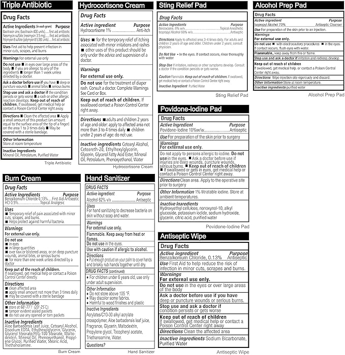 - Contents β Packed with 150 Pieces useful and valuable hospital grade first aid supplies - See the product images and the product description below for a full list of contents. We are confident that you will find that there are more and higher quality contents in our kits than any other on the market.
