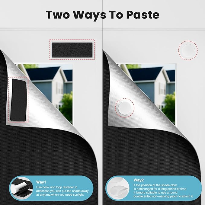 - 【Hook & Loop Stickers Firm And Reliable】: The hook & loop tabs of the blackout window cover are no marks or residues after removing and can be attached without drilling; hook & hoop stickers of the temporary window shades stick on are firm and reliable, don't worry about the trouble of falling of.