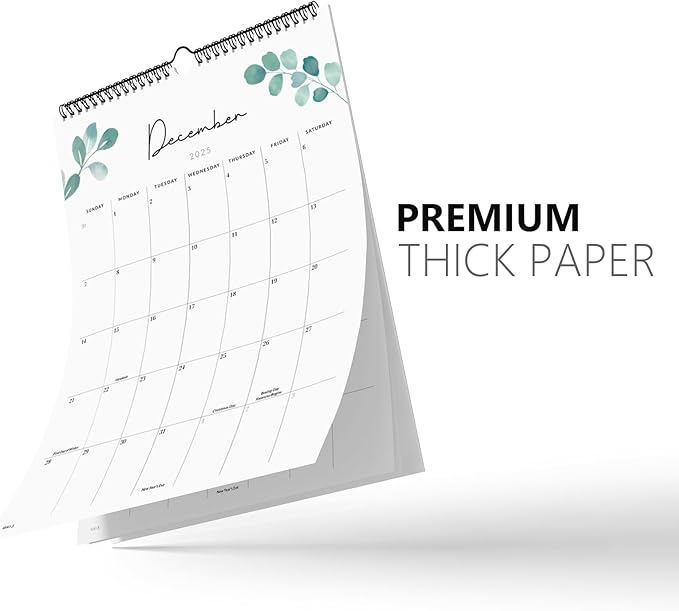 - PREMIUM PAPER: Printed on thick, premium paper to avoid ink through, this monthly calendar 2025-2026 provides a smooth writing surface and ensures legible content. The sturdy twin-wire binding for easy page-turning
