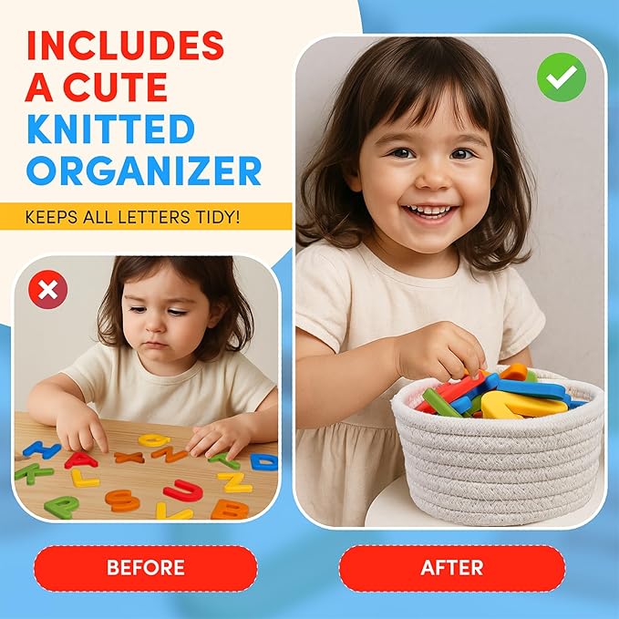 - Great Learning Partner: Encourage 4-in-1 early development: Letter recognition, spelling practice, color sorting, and coordination skills! Children learn ABCs through tactile play β building words on the fridge or sorting colors. Vibrant hues accelerate color learning, ideal for interactive sessions with refrigerators and whiteboards