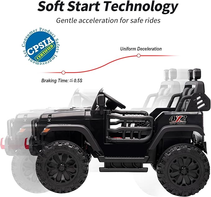 - DURABLE & SAFE RIDE: This battery operated kids vehicles features a 16mm solid steel axleand supports up to 150 lbs. With four-wheel suspension and soft-start, it ensures a smooth, safe ride for endless fun!