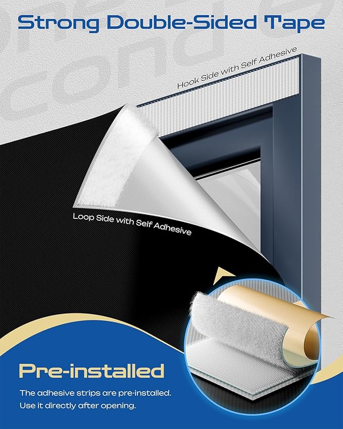 - Upgraded Hook & Loop Installation - Featuring industrial-grade Hook & Loop tape, no drilling or professional tools are needed. Simply fix the patches on the window frame (suitable for both flat and curved surfaces), align the window curtains, and press to complete the installation in just a few minutes. For creases, iron at 120ββ150β with a cloth to maintain the durability of the fabric and fastener