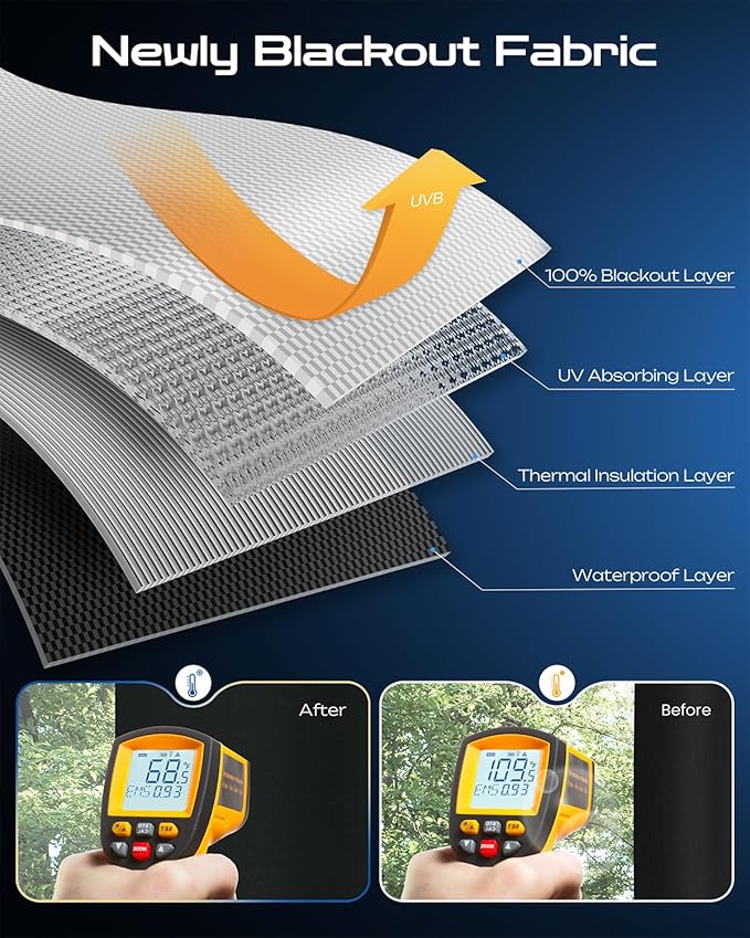 - Full-Scene Portable Application - The blackout curtain is compact and lightweight when folded, suitable for carrying during travel, camping, or temporary hotel shading. It supports multi-panel hook-and-loop splicing with a 5 cm overlap to cover extra-wide windows. Whether for bedroom sleep, living room movie viewing, office partitions, or RV space renovations, it meets diverse scene requirements