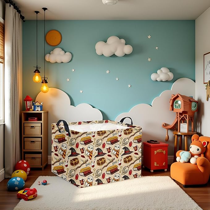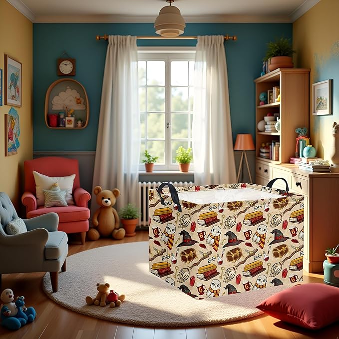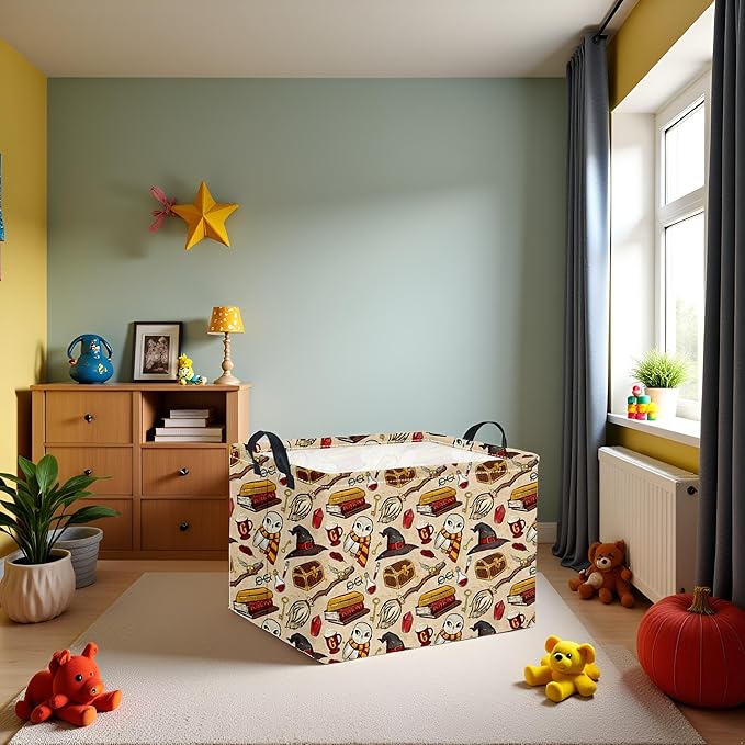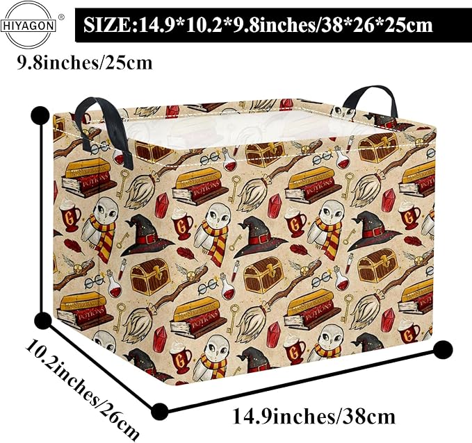 HIYAGON Rectangular Halloween Basket for Boys and Girls Kids Trick or Treat Pumpkin Basket for Halloween Parties Cute Storage Bin Organizer Box Room Decor(Magic)