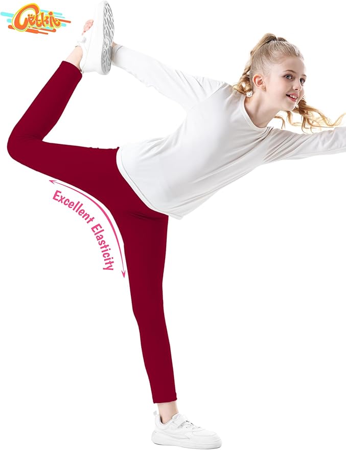 - Leggings for Toddler Girls, Ankle Length Cotton Girls Leggings Dark red, 2T