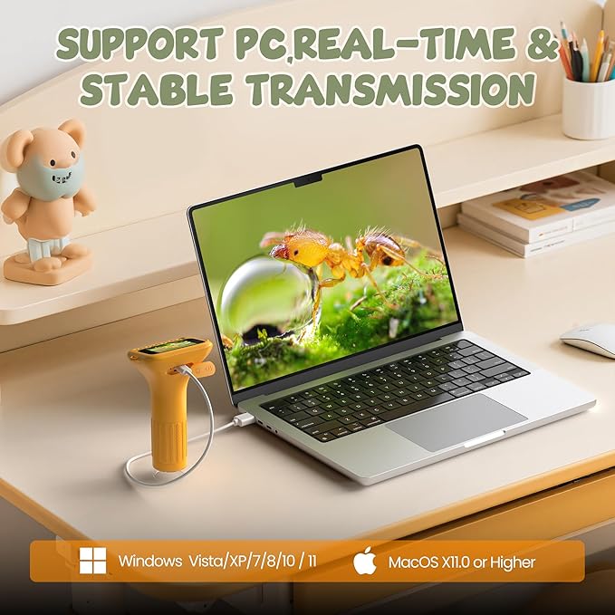 - Encourage Exploration & Reduce Phone Dependence: This digital microscope sparks kids’ curiosity about nature, prompting them to put down phones and head outdoors. They’ll observe leaf cells, insect legs, or soil particles—gaining knowledge while having fun. It fosters healthy habits by turning screen time into hands-on exploration, making this microscope a great way to balance play and learning for kids