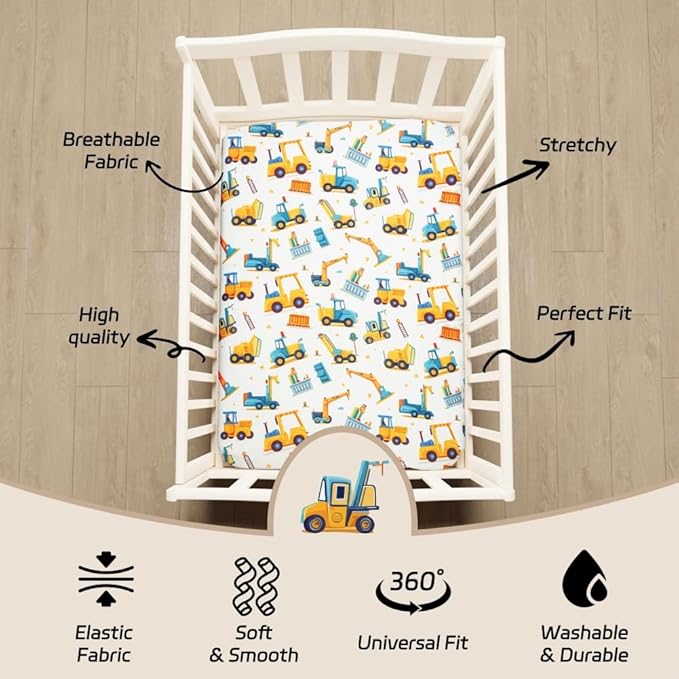 - CONSTRUCTION THEME CRIB BEDDING SET: This crib bedding set add a playful and soft touch to your toddler's or baby’s nursery with a construction theme. It also can add a funny atmosphere to the neutral style nursery and helping the baby to self-soothe to sleep