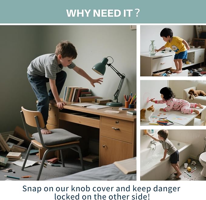 - π Child Safety First -- These door knob safety covers for kids stop toddlers from opening doors to unsafe areas. A must-have for childproofing your home.