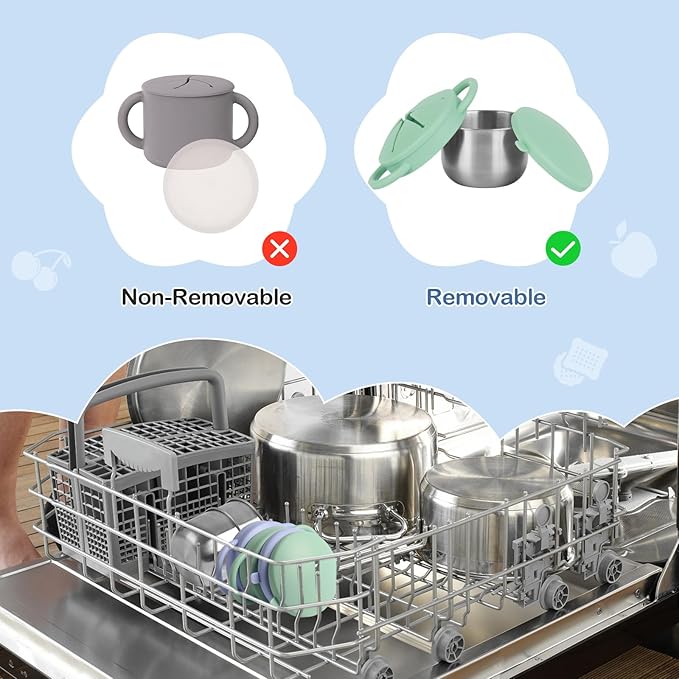 - Easy to Clean: Say goodbye to sticky residue and odors! Our baby snack cups feature a unique 3-in-1 detachable design that can be opened with a simple twist, making deep cleaning easy and simple. It is stain-resistant and dishwasher-safe, or can be quickly wiped clean. This makes cleaning a breeze for busy parents, allowing children to be ready to enjoy any snack time adventure.