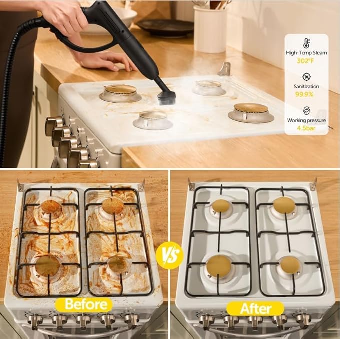 - Deep Steam Cleaning Without Harsh Chemicals:Delivers 302°F steam that penetrates grime and grease on hard surfaces, offering an effective clean without the need for chemical cleaners.