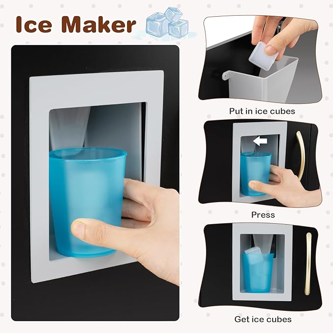 - 【Realistic Role-Play Cooking Experience】The kitchen set for kids consists of microwave, telephone, 2 stoves, ice maker, fridge, dishwasher and play sink with rotary faucet and knobs. This toy kitchen set stimulates real kitchen scenes and provides kids with unlimited fun of pretend play. Moreover, the “click” sounds of the oven knob add more realistic cooking fun.