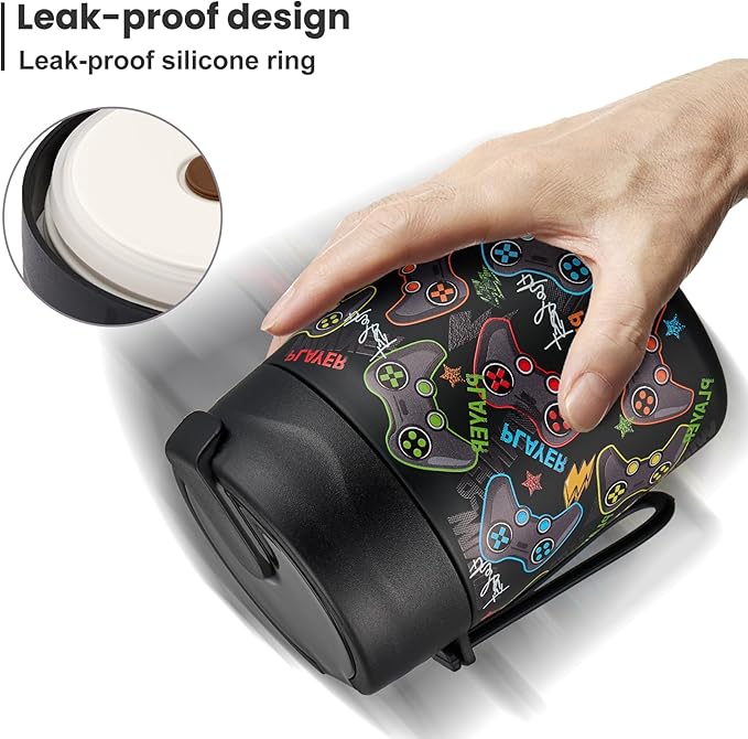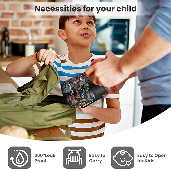 17oz Soup Thermo for Hot Food Kids,Insulated Food Jar with Spoon,Thermo Hot Food Lunch Container,Wide Mouth Leakproof Stainless Steel Lunch Box for School-Black Game